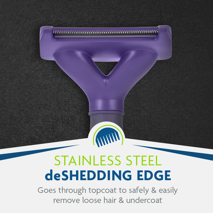 • Removes Loose Hair: Stainless steel deShedding edge reaches through the topcoat to safely remove loose hair and undercoat without damaging skin*