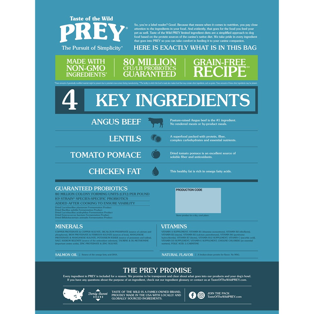 With four key ingredients, PREY Angus Beef Recipe for Dogs delivers a simplified, complete diet. Along with pasture-raised Angus beef, this recipe offers guaranteed probiotics to help support digestion, precise levels of vitamins and minerals, guaranteed antioxidants, omega fatty acids and DHA to help ensure your dog gets the complete nutrition they need, all with the rich, red-meat taste of beef dogs crave.